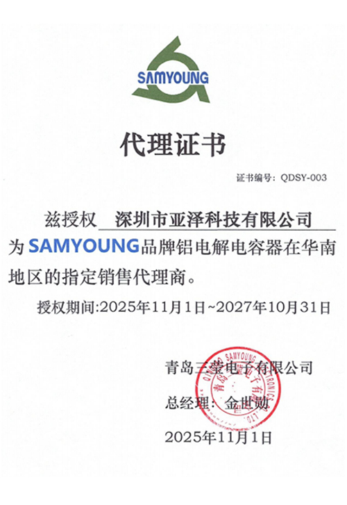 深圳市亞澤科技有限公司是NCC黑金剛電容一級代理商, 目前獲得:日本黑金剛(NIPPON CHEMI-CON)電容、韓國三瑩(S...